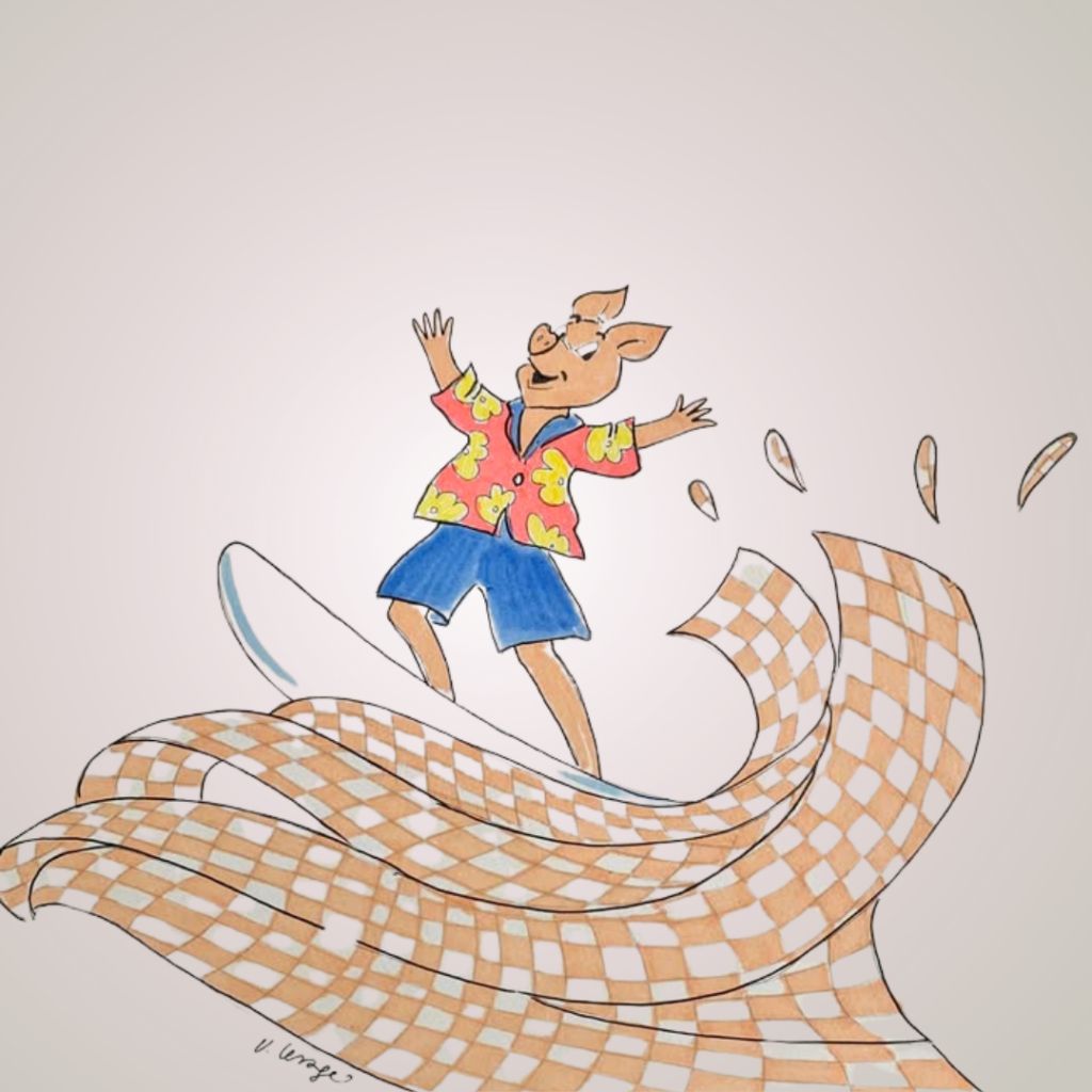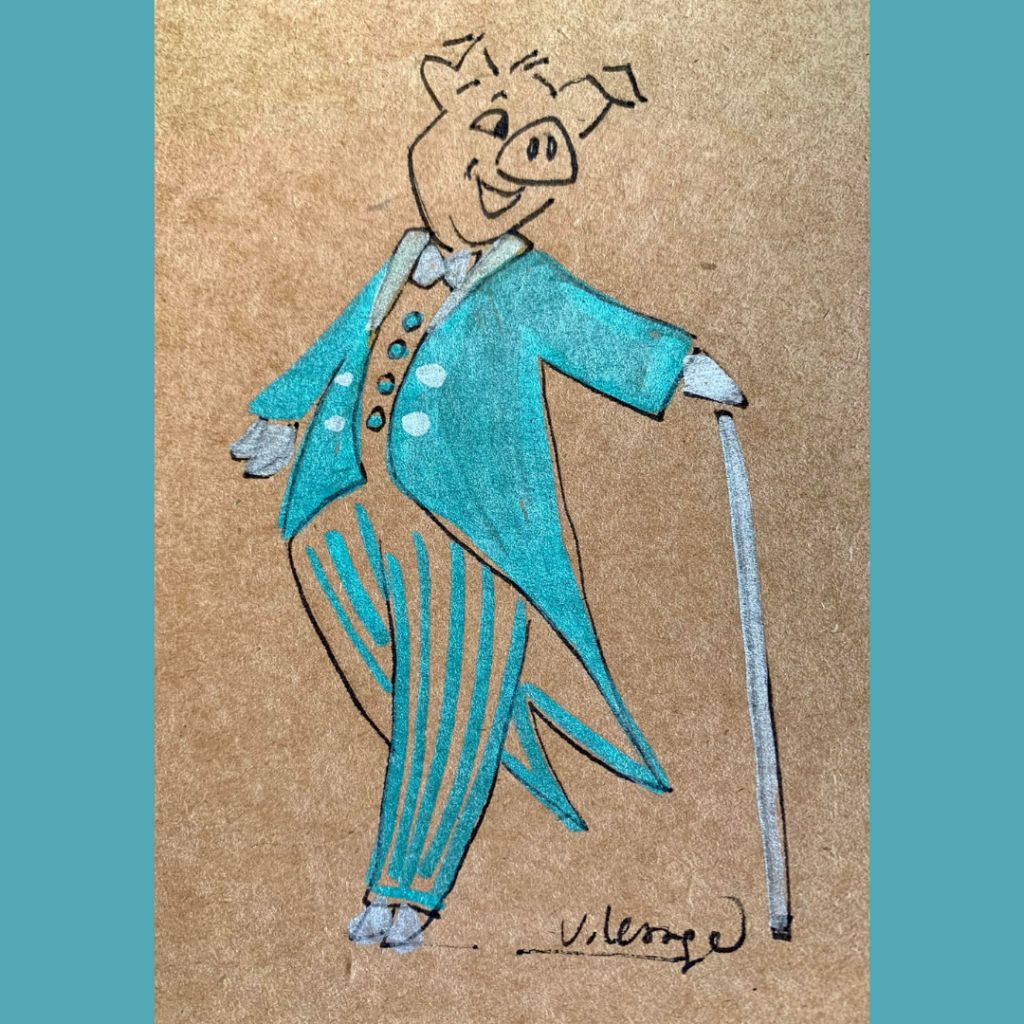 Cochon (bis) : le « Monsieur » est vu ici par la plume et le pinceau de Véronique Lesage, artiste peintre à René et membre de la Confrérie des Chevaliers des Rillettes sarthoises. Toutes ses œuvres à découvrir sur www.veronique-lesage-artiste.com