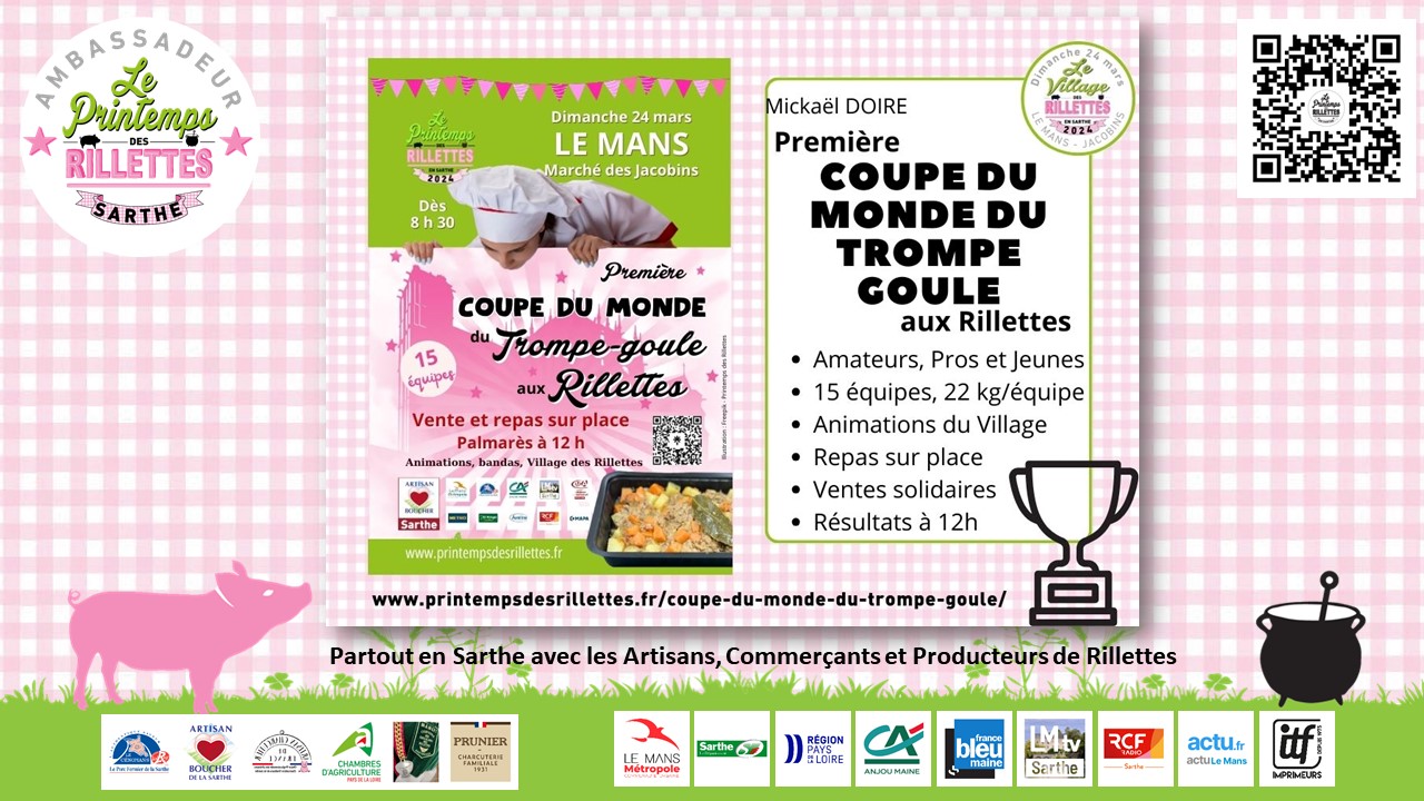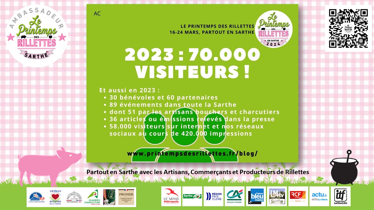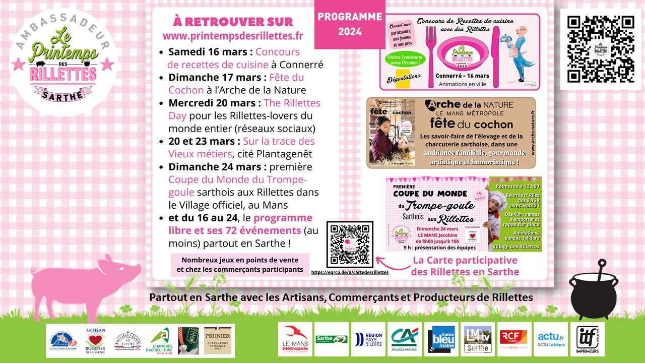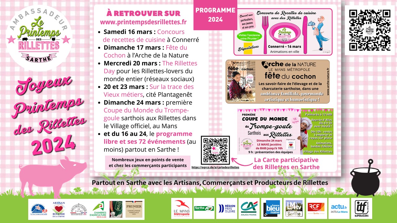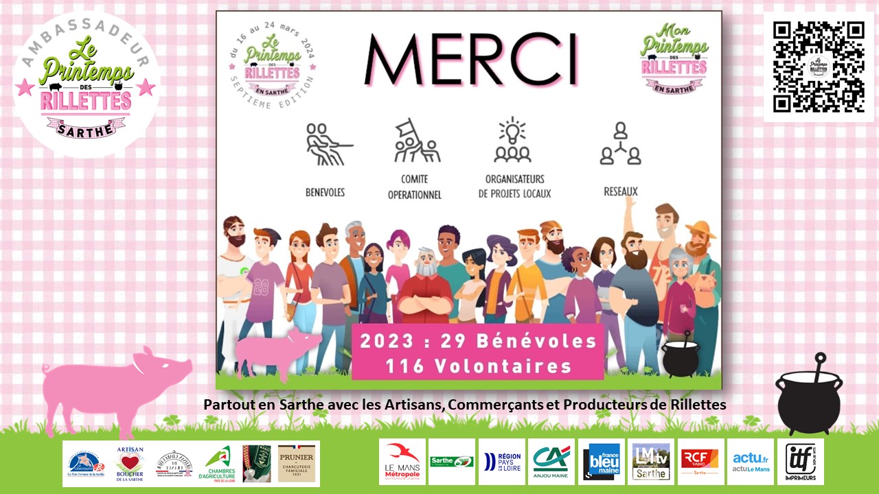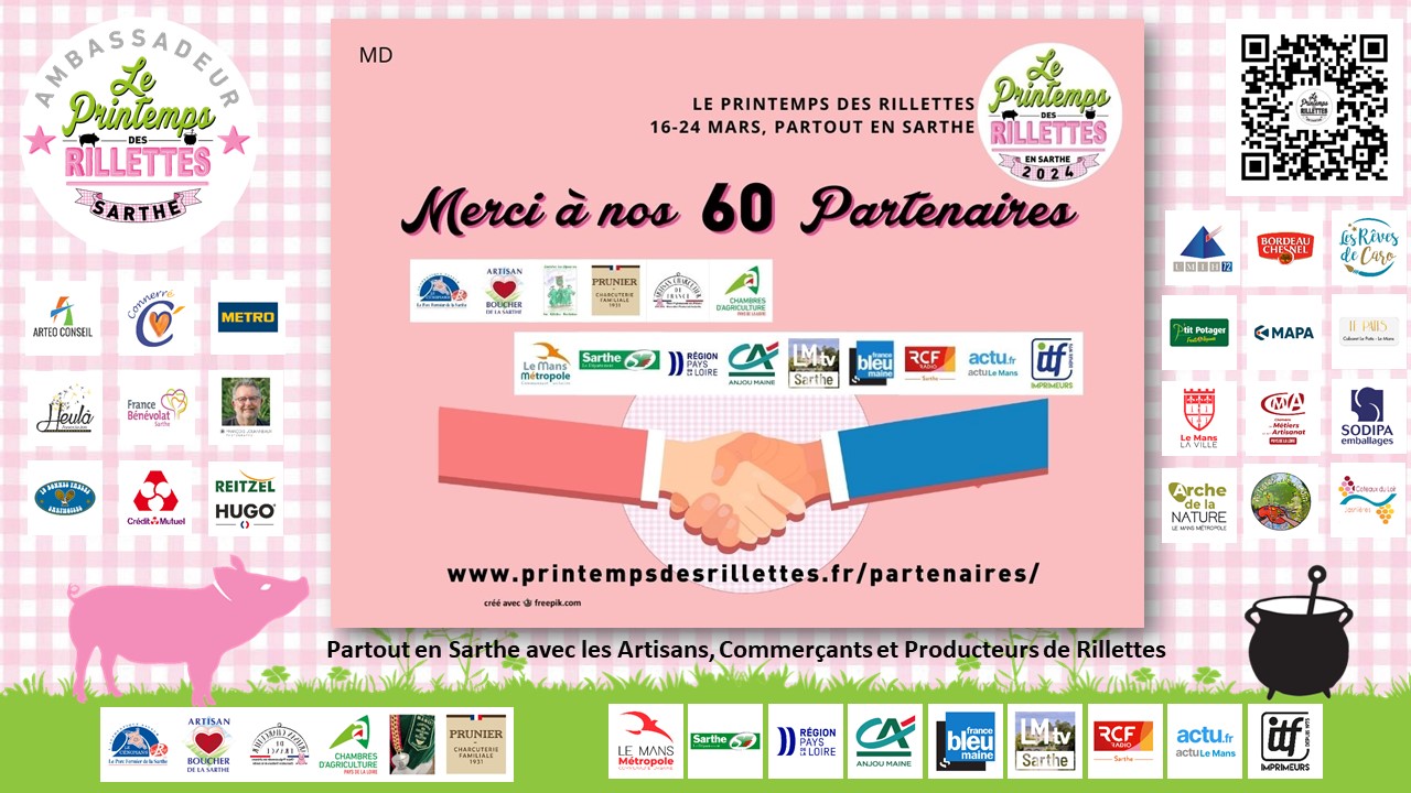 MERCI à eux, et MERCI à vous toutes et tous qui aimez les Rillettes en Sarthe et dans le monde. Nous vous donnons rendez-vous du 16 au 24 mars, dans les événements qui vont jalonner le département pendant ces 9 jours !